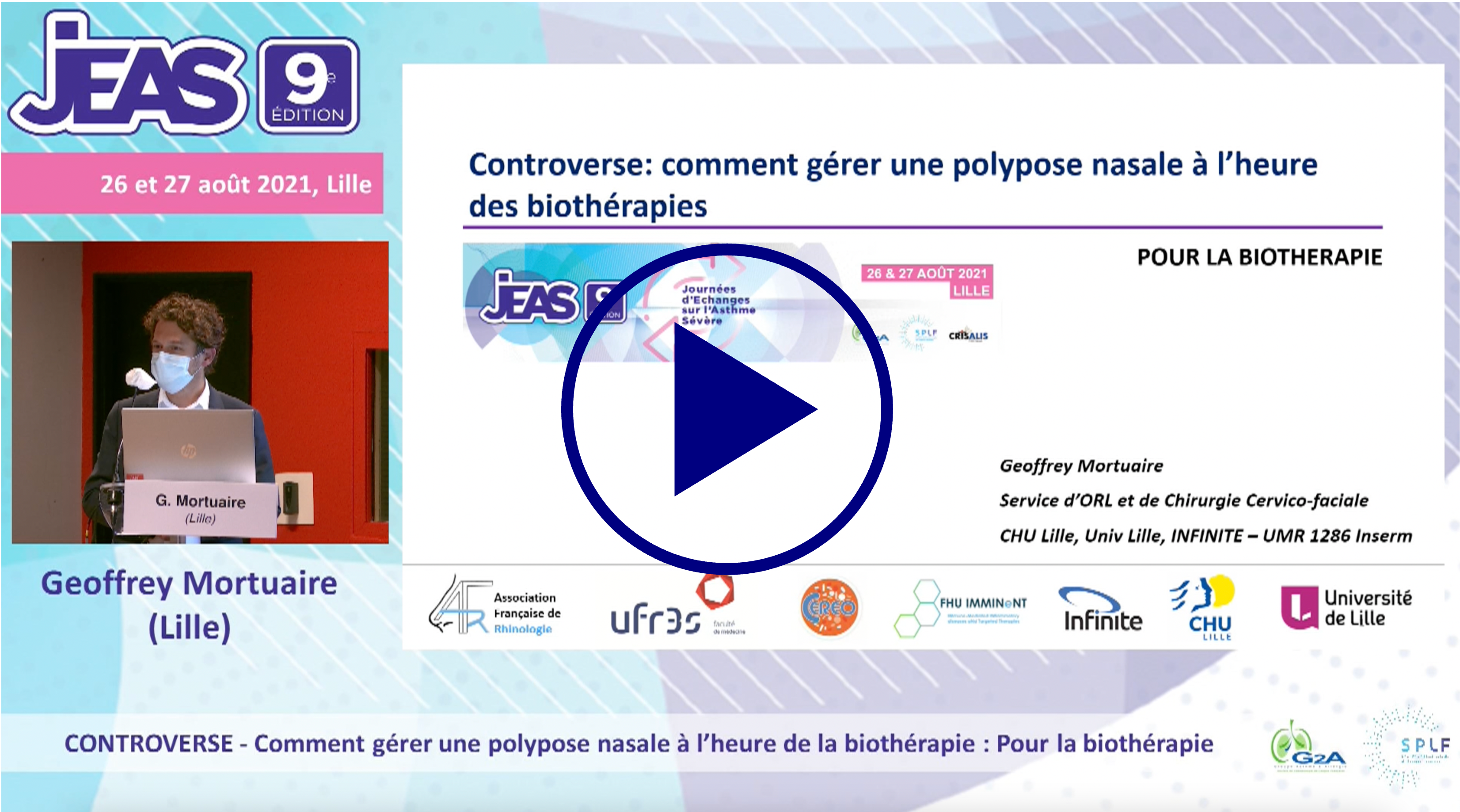 16h50 - 17h10 - CONTROVERSE - Comment gérer une polypose nasale à l'heure de la biothérapie : Pour la biothérapie > Goeffrey Mortuaire (Lille)